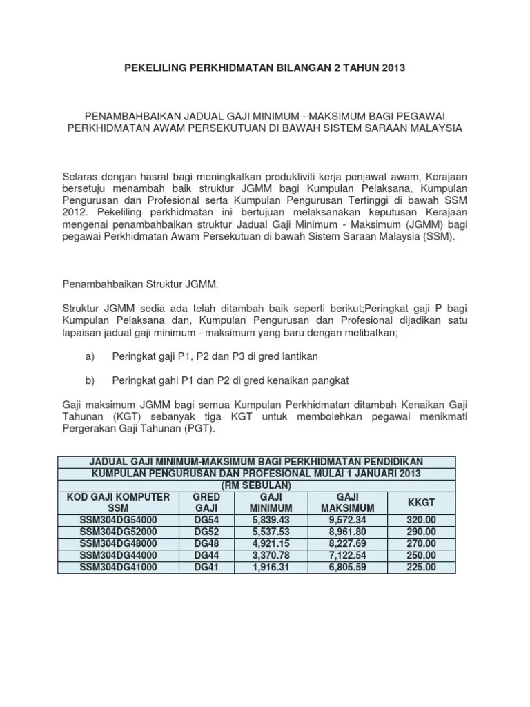 Kadar kenaikan gaji tahunan penjawat awam 2020 mengikut gred. Tindakan memperakukan calon yang telah pun dinaikkan pangkat bagi urusan ini akan dipertanggungjawabkan kepada ketua jabatan berkenaan. Pergerakan gaji tahunan adalah tidak automatik dan akan. Urusan pemangkuan pegawai perkhidmatan pendidikan (ppp) sebagai guru cemerlang di sekolah, kolej vokasional, institut aminuddin baki, kolej matrikulasi, english language teaching centre dan pensyarah cemerlang di institut pendidikan guru secara khas untuk penyandang di kementerian pendidikan malaysia tahun 2022 dengan hormatnya perkara di atas adalah dirujuk.